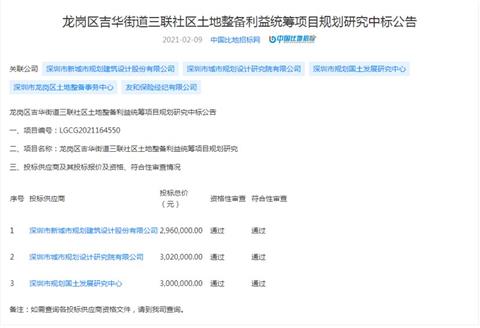 问三联社区土地整备利益统筹项目规划研究中标公告